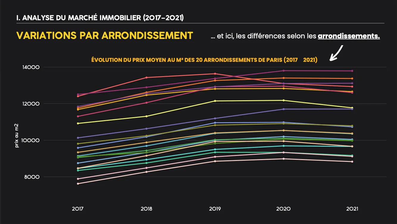 • Historical analysis: study the evolution of real estate prices in Paris (2017–2021) to identify market dynamics and key correlations.