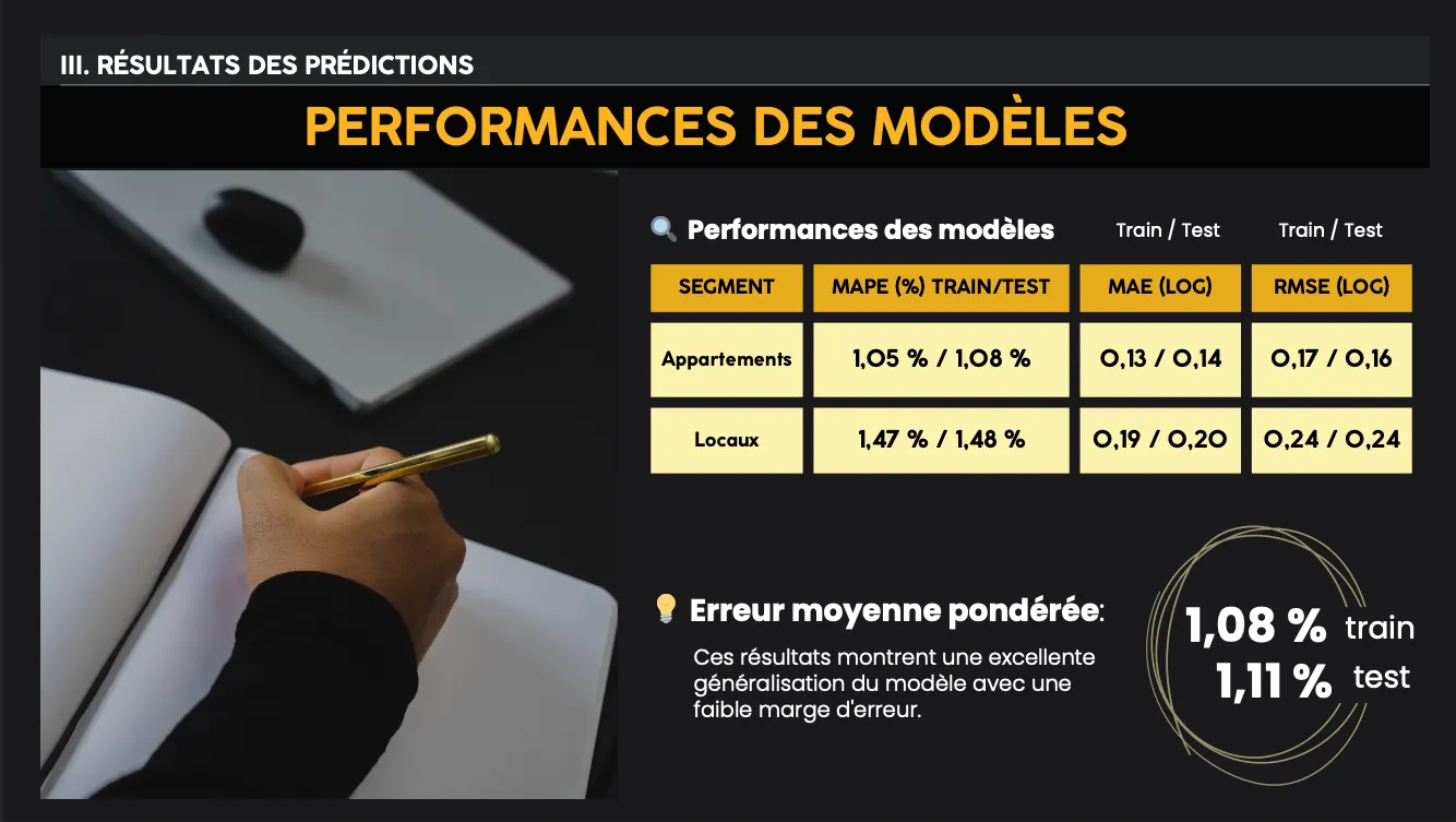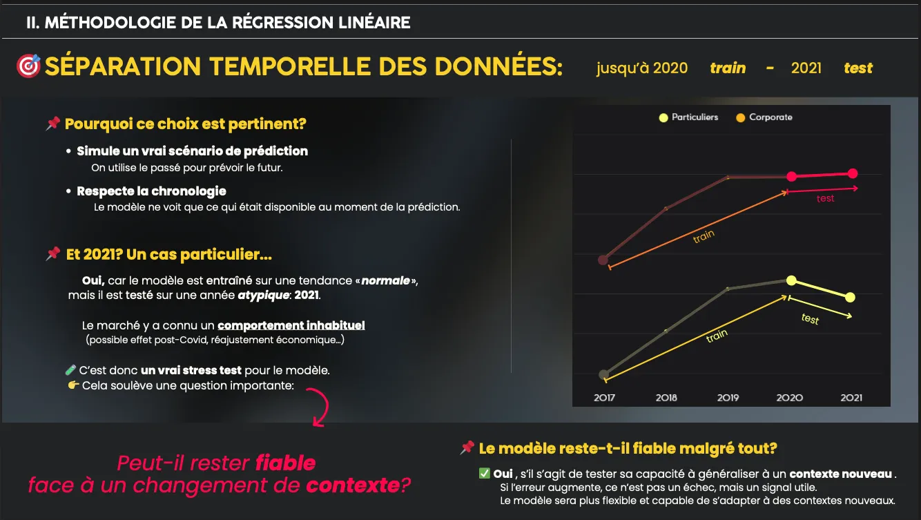 • Preprocessing: log transformation of target variable, one-hot encoding of postal codes, time-based train/test split (train ≤ 2020, test = 2021)